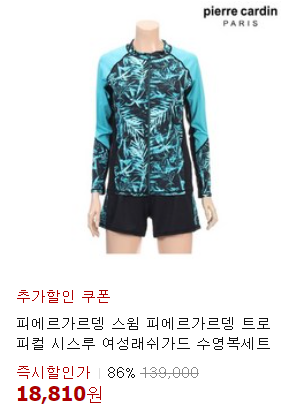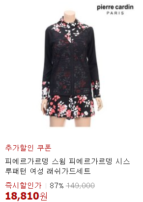 87%~ 할인! 피에르가르뎅 시스루 래쉬가드