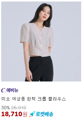 <미쏘> 블라우스 여성용 핀턱 크롭 블라우스 30% 할인