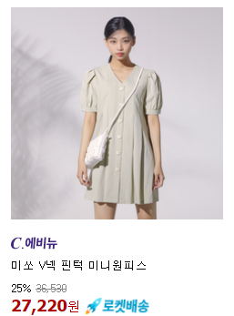 <미쏘> 원피스 V넥 핀턱 미니원피스 25% 할인