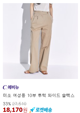 <미쏘> 바지 10부 투턱 와이드 슬랙스 33% 할인