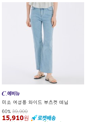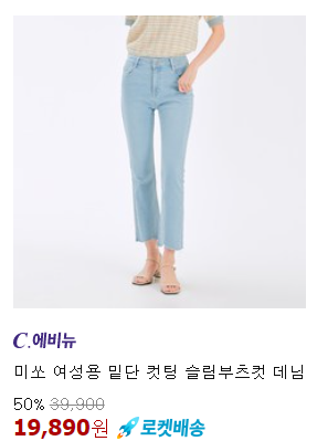<미쏘> 바지 밑단 컷팅 슬림부츠컷 데님 50% 할인