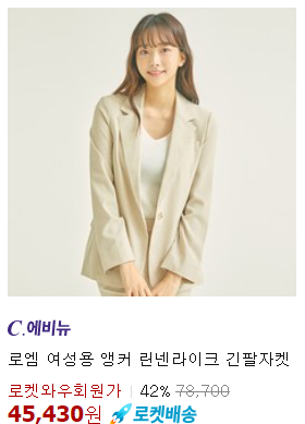 <로엠> 아우터 싱글 캐주얼 자켓 세트 55% 할인