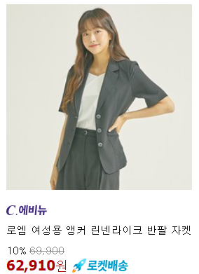 <로엠> 아우터 앵커 린넨라이크 반팔 자켓 10% 할인