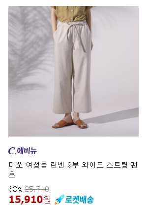 <미쏘> 바지 린넨 9부 와이드 스트링 팬츠 38% 할인