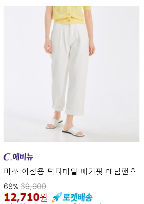 <미쏘> 바지 턱디테일 배기핏 데님팬츠 68% 할인