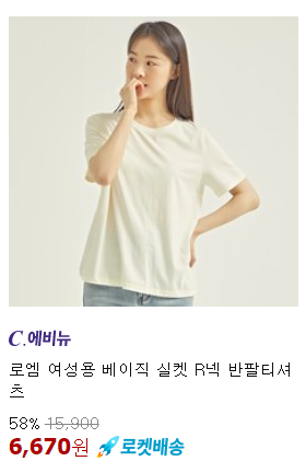<로엠> 티셔츠 베이직 실켓 R넥 반팔티셔츠 58% 할인