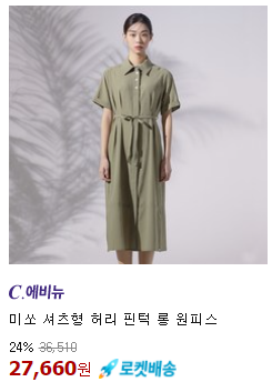 <미쏘> 원피스 셔츠형 허리 핀턱 롱 원피스 24% 할인
