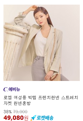 <로엠> 아우터 빅템 프렌치린넨 스트레치 자켓 38% 할인