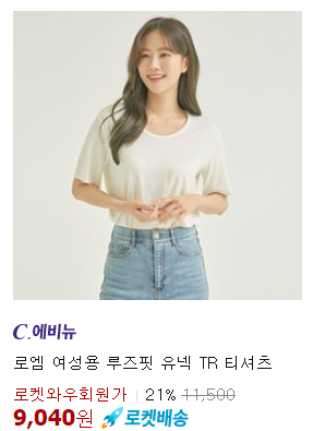 <로엠> 티셔츠 루즈핏 유넥 TR 티셔츠 21% 할인